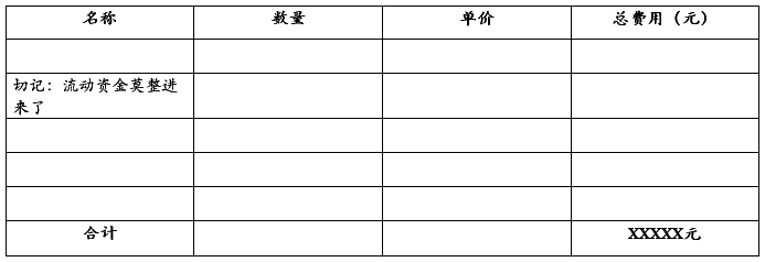 金: 32000元(办公设备及工具); 执照,税务登记证,组织机构代码证,银行开户,刻章收费,预计费用元。