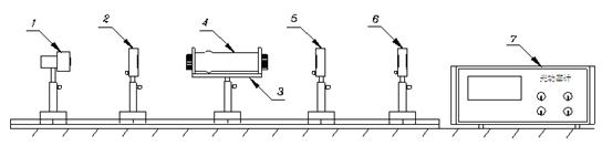 偏振光旋光实验仪的结构如图2所示。它由光具座、带刻度转盘的偏振片2个、样品试管、样品试管调节架、光功率计等组成。