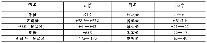 表1某些药物的旋光率(单位:(o)·g-1·cm3·dm-1)